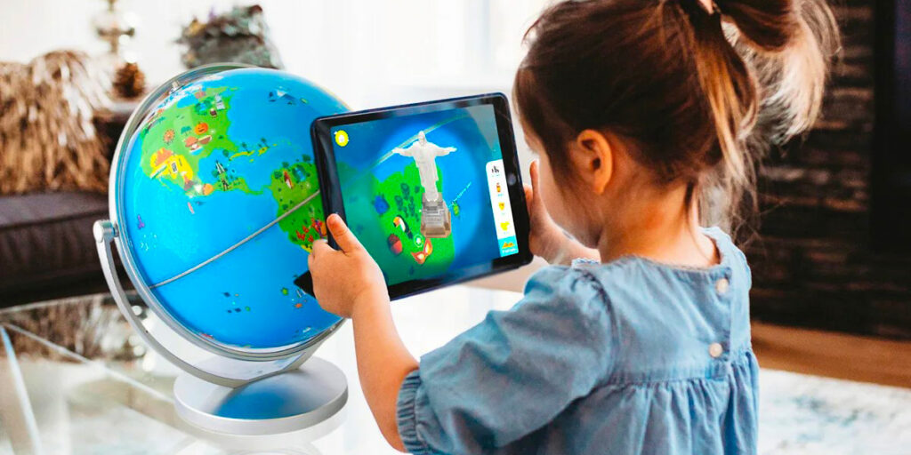 Гарним прикладом мультисенсорного навчання географії для дітей молодшого шкільного та дошкільного віку стане інтерактивний глобус. Окрім яскравих та цікавих зображень на глобусі та в додатку, дитина отримує важливі знання. Навчання проходить настільки цікаво, що дитина не задумується, що це урок.