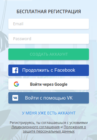 Як в будь-якому сервісі, робота починається з реєстрації. Пройти її можна вручну або автоматично, якщо у вас є акаунт в google чи facebook. Далі відбувається процедура знайомства.