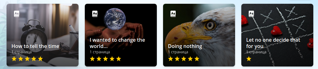 Сервіс пропонує комплексний підхід до вивчення англійської. Тут ви знайдете тексти англійською. Читаючи щось, вам трапилось незнайоме слово, натисніть на нього і на інтерактивній дошці з’явиться переклад цього слова. До того ж одним натиском ви можете додати це слово до власного списку слів, які плануєте вивчити.