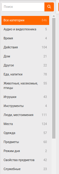 Раздел Карточки – позволяет использовать готовые изображения с письменным и звуковым сопровождением. Всего там 845 изображений, сгруппированных по категориям. Поэтому достаточно удобно в режиме реального времени проводить урок и демонстрировать его с помощью картинок. Если этих изображений не хватает, то можно скачать из интернета прямо в процессе урока, масштабировать их на интерактивной доске и сделать соответствующее сопровождение и сохранить в собственном шаблоне. В дальнейшем не нужно будет снова искать изображения и менять его. Картинка будет доступна вам в любой момент времени.
